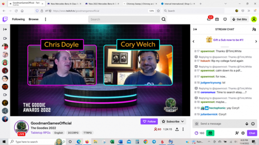 We are extremely proud to announce that Goodman Games did award our team a Goodie Award last Friday night! We are humbled to have our entire team recognized, although the award was attached to a single person for the event, this is entirely a team venture with multiple integral members that make the Crawl for the Cure possible, as well as the volunteers, Judges, players and donors that enable us to make a difference! We’re all a team!