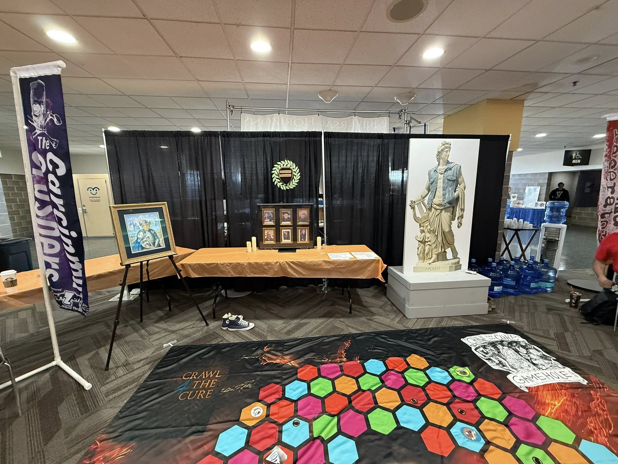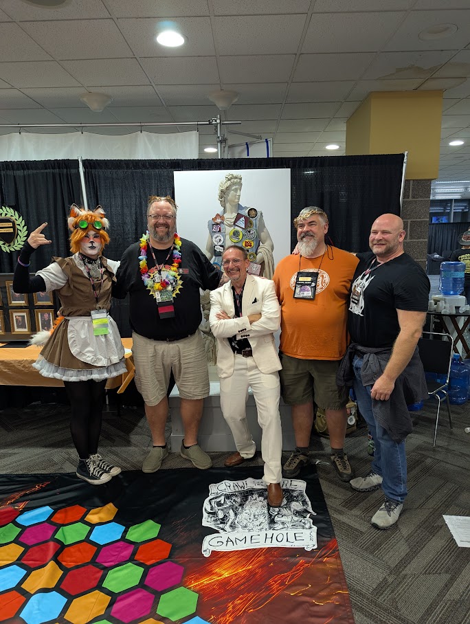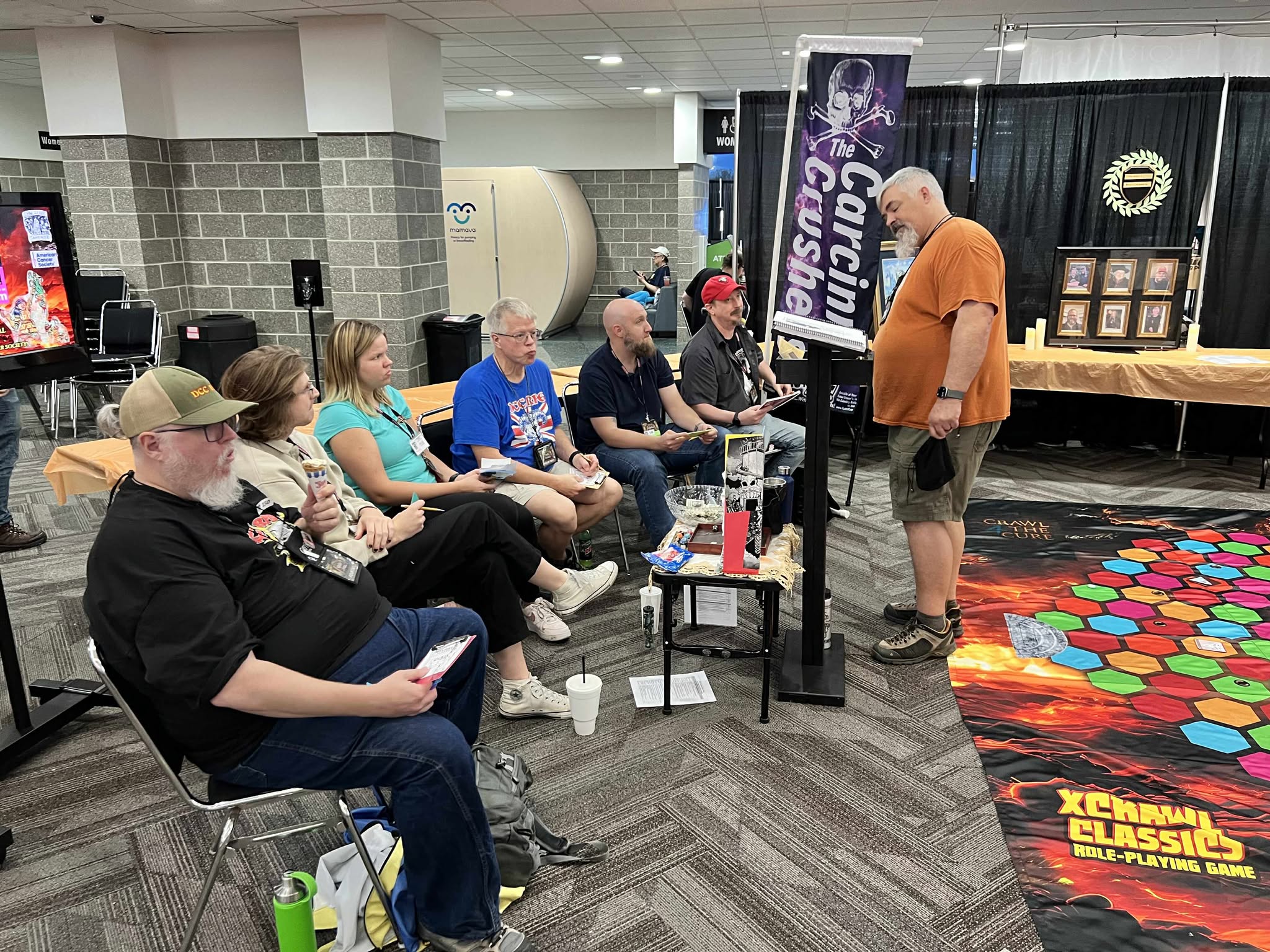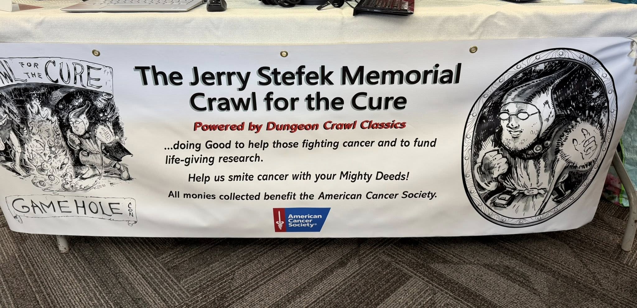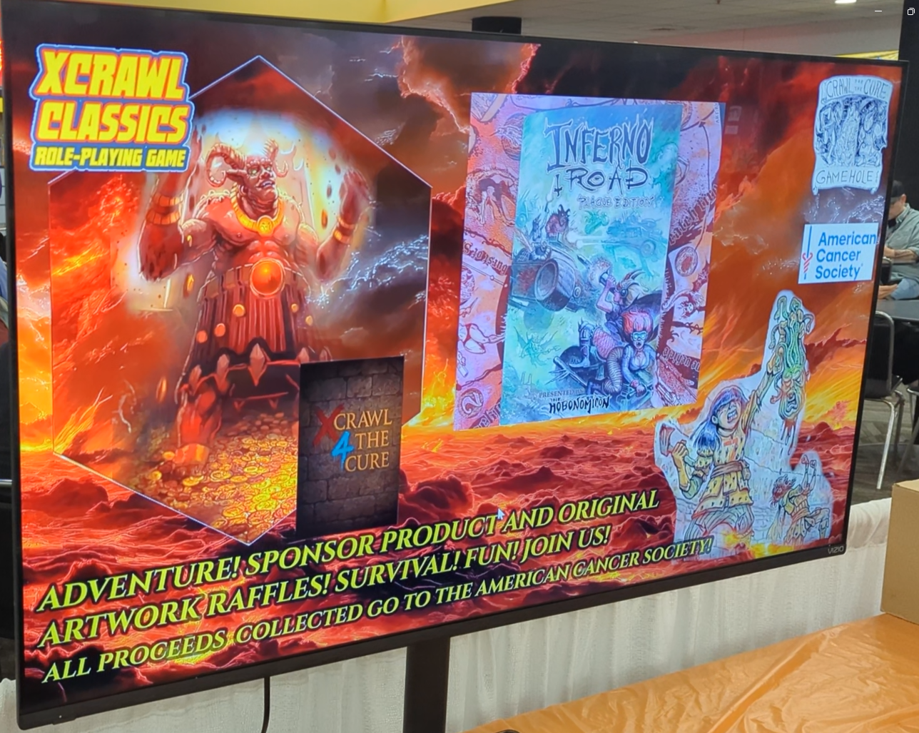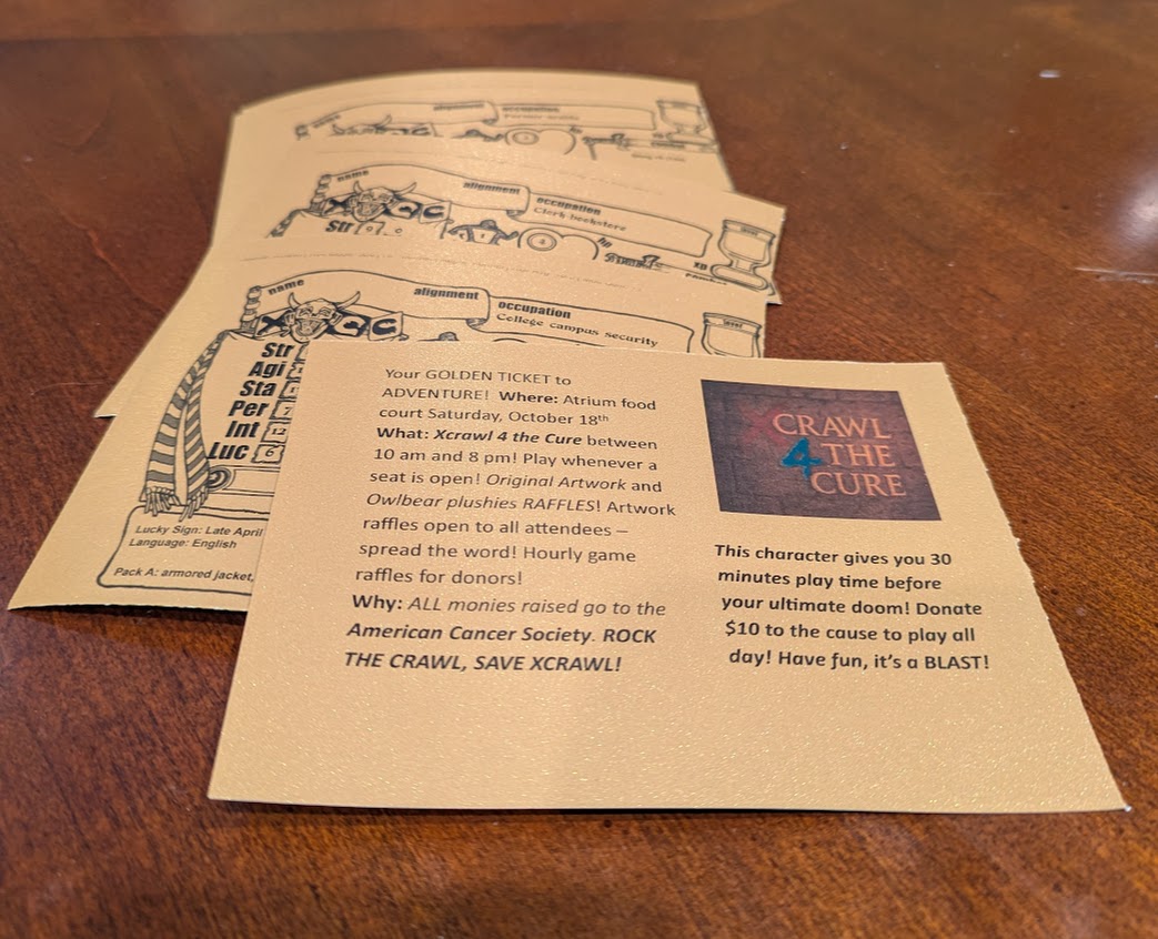 The Jerry Stefek Memorial Crawl for the Cure hosted Xcrawl 4 the Cure at Gamehole 12 on Saturday, October 18th! Jim Meyers and Keith Nelson organized original Xcrawl content from 40 authors to bring you an amazing Xcrawl experience at Gamehole Con!  Players battled room by room versus the demon of greed, Mammon, and his dark minions for the soul of Xcrawl and lighting a beacon to the gods of Olympus to return their grace to the games! It was an incredible time for all, patches of sponsors adorning the battlevest of Apollo to ensure his return to the faithful elite competitors of Xcrawl!