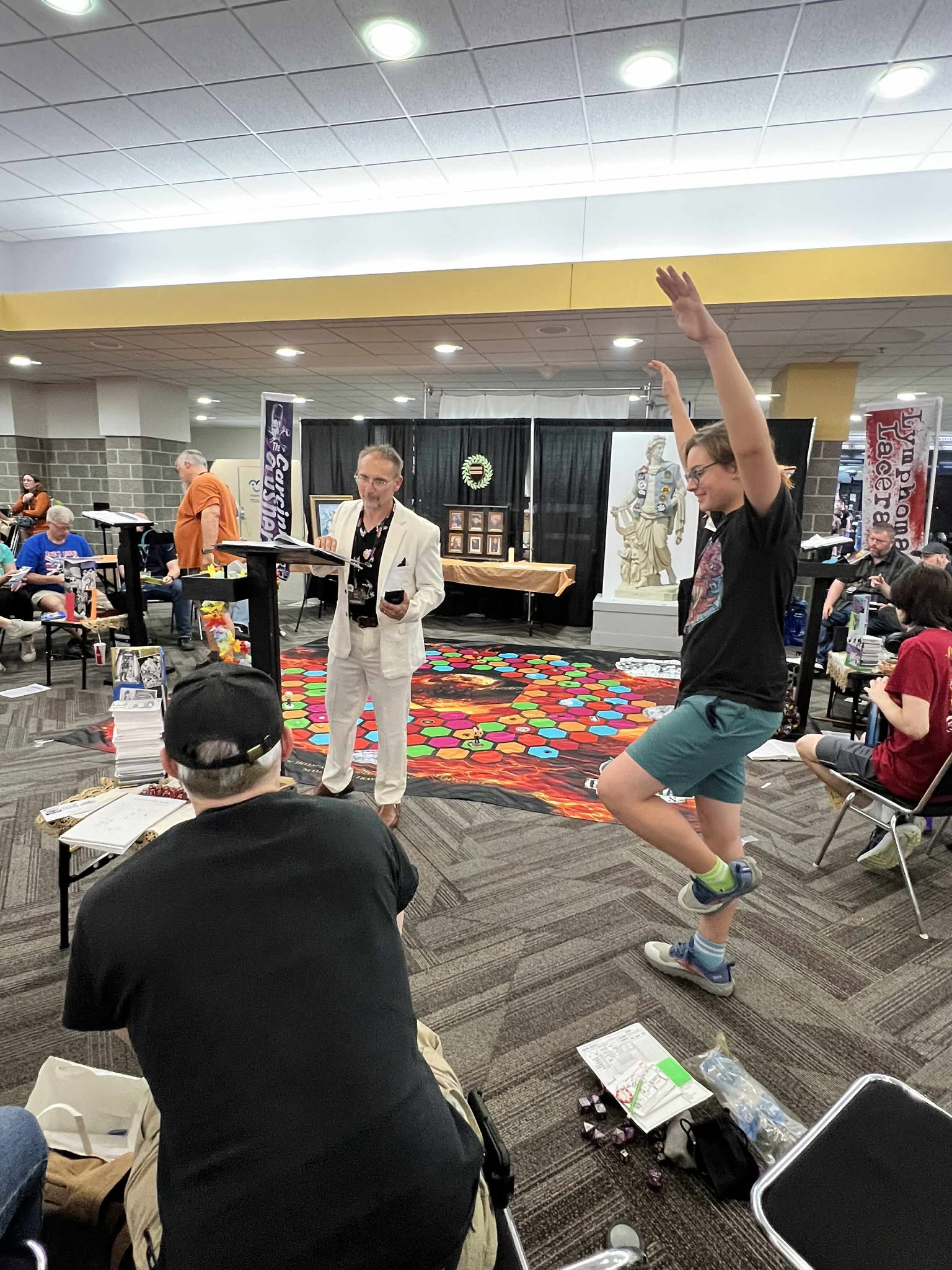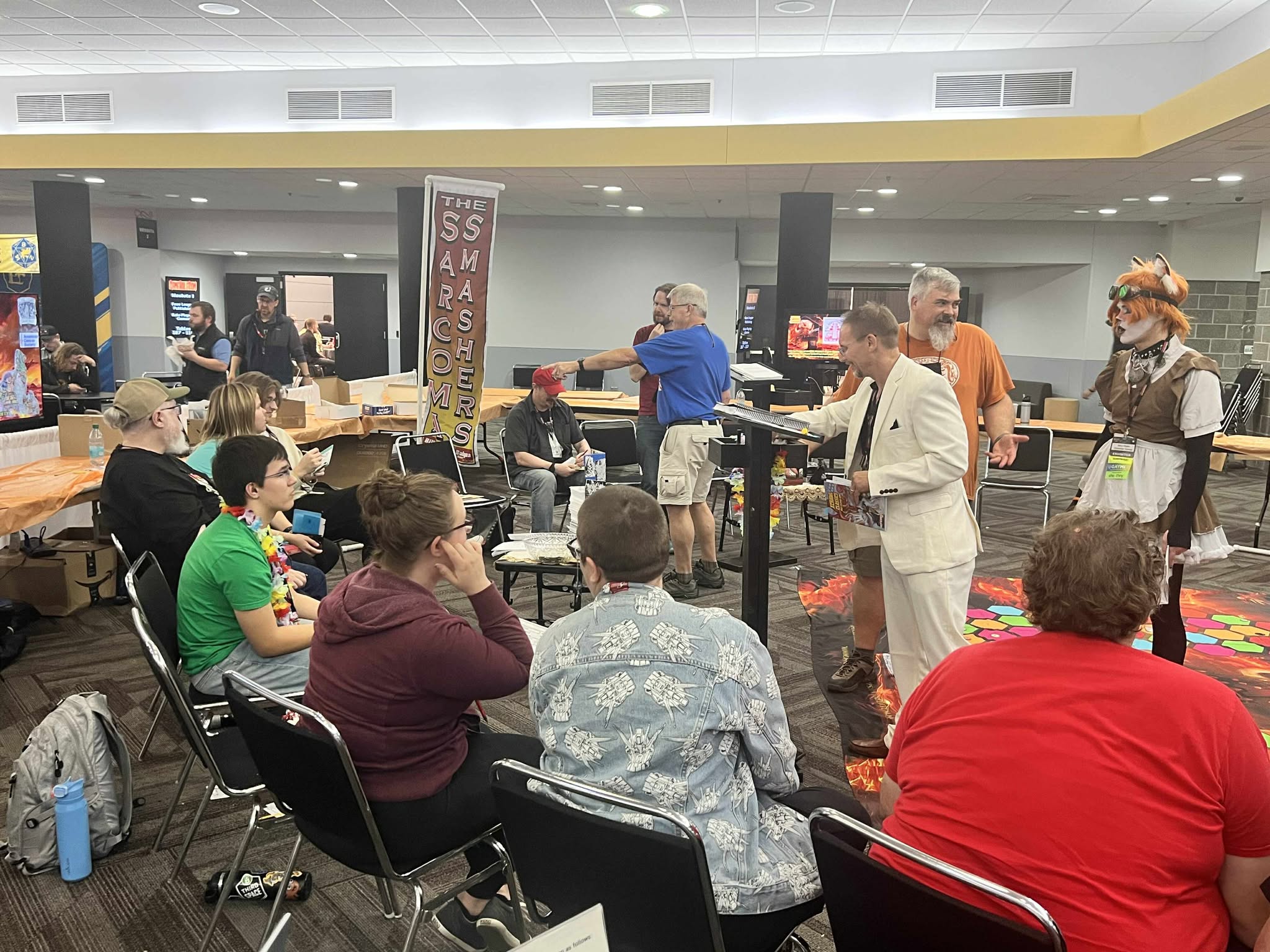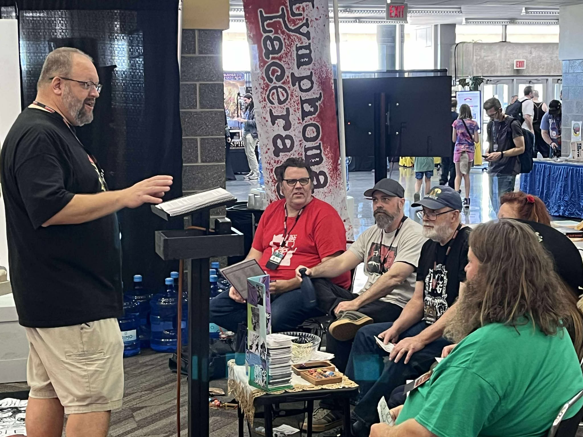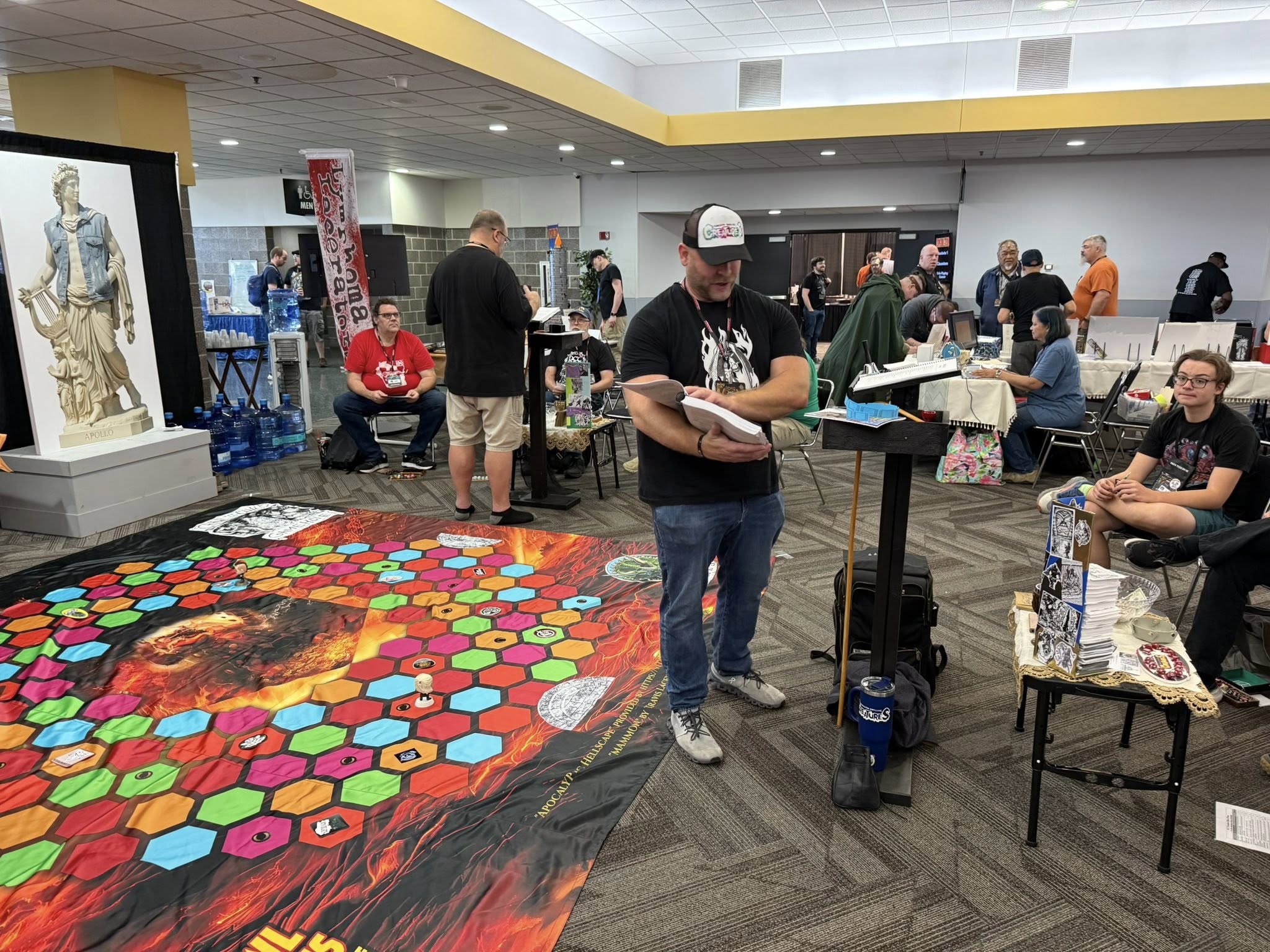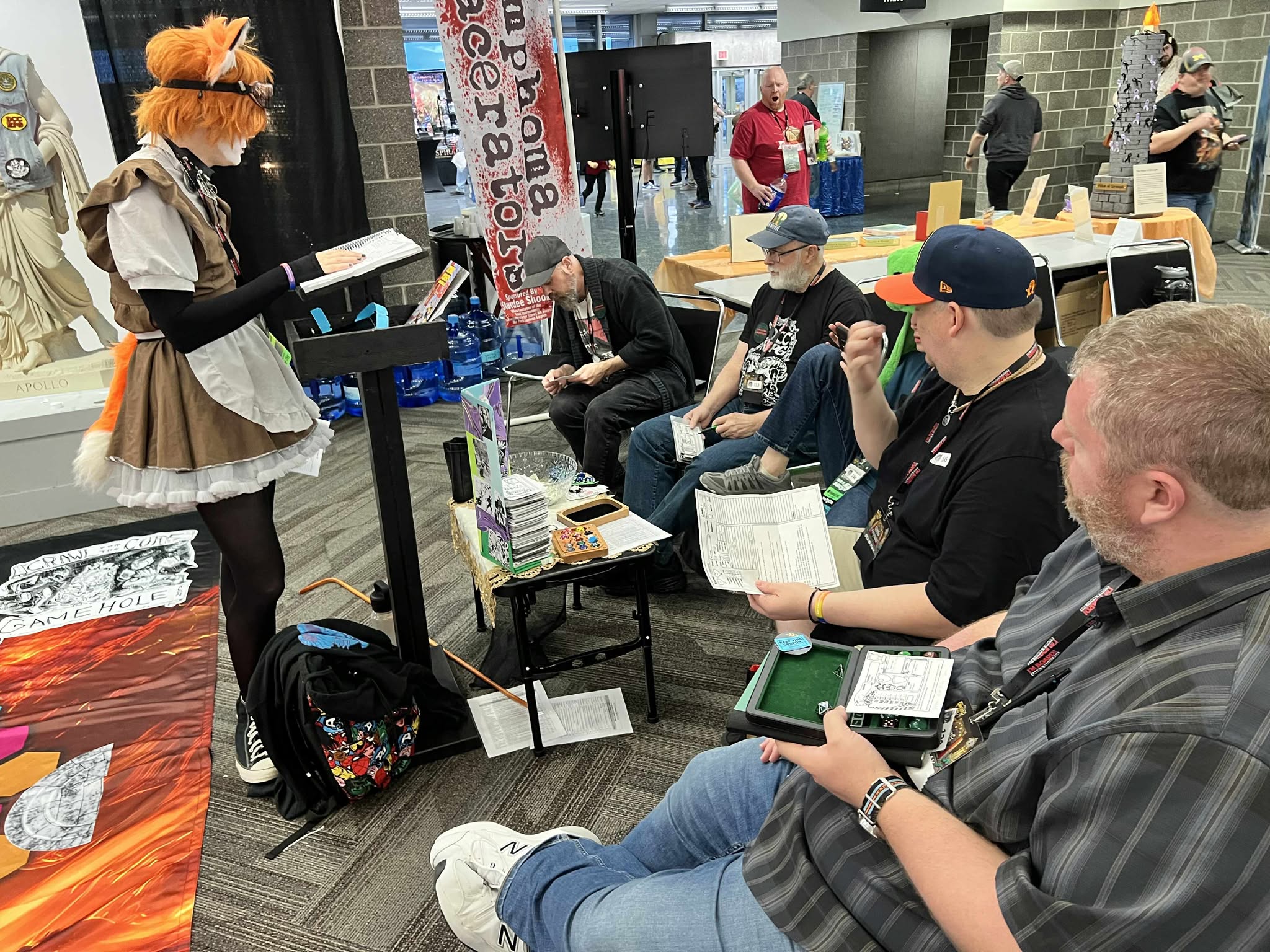 The Jerry Stefek Memorial Crawl for the Cure hosted Xcrawl 4 the Cure at Gamehole 12 on Saturday, October 18th! Jim Meyers and Keith Nelson organized original Xcrawl content from 40 authors to bring you an amazing Xcrawl experience at Gamehole Con!  Players battled room by room versus the demon of greed, Mammon, and his dark minions for the soul of Xcrawl and lighting a beacon to the gods of Olympus to return their grace to the games! It was an incredible time for all, patches of sponsors adorning the battlevest of Apollo to ensure his return to the faithful elite competitors of Xcrawl!
